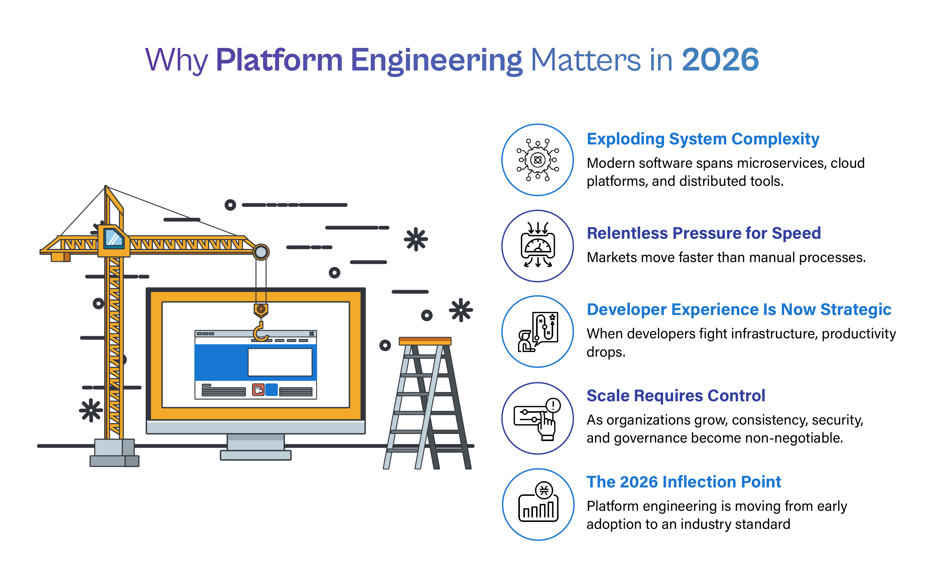 Platform engineering provides this foundational layer by aligning technical operations with business priorities, strengthening organizational resilience, and promoting operational consistency at scale. The following points illustrate why this approach now plays a critical role in helping organizations remain competitive, adaptable, and future-ready across global markets: