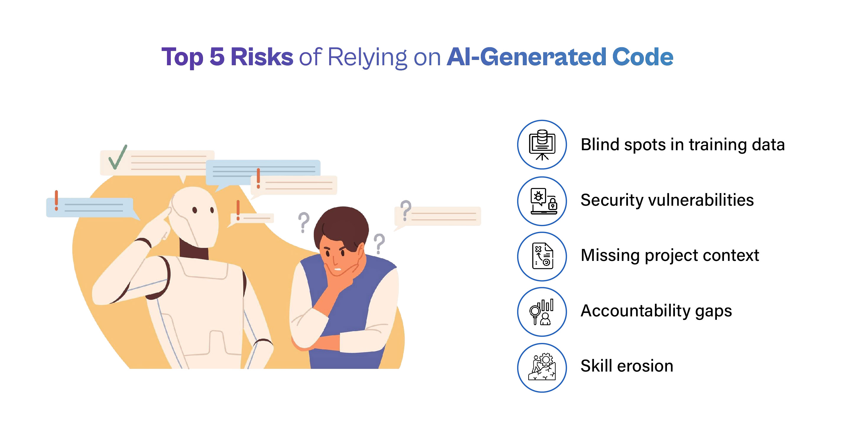 Accountability confusion. As AI writes more code, ownership and responsibility become blurred. The New Stack warns of a “code accountability crisis”. Someone must own the final code.
